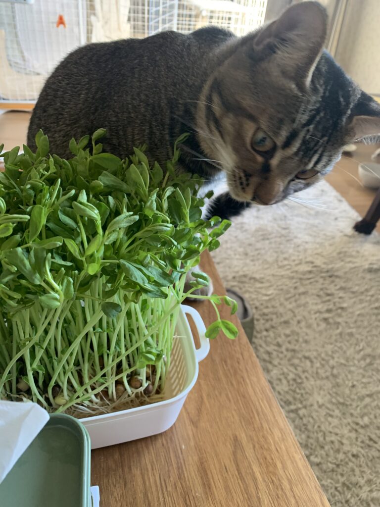 猫が豆苗をつまみ食いしてしまった! これって大丈夫なの!?と一瞬ヒヤッとした話。