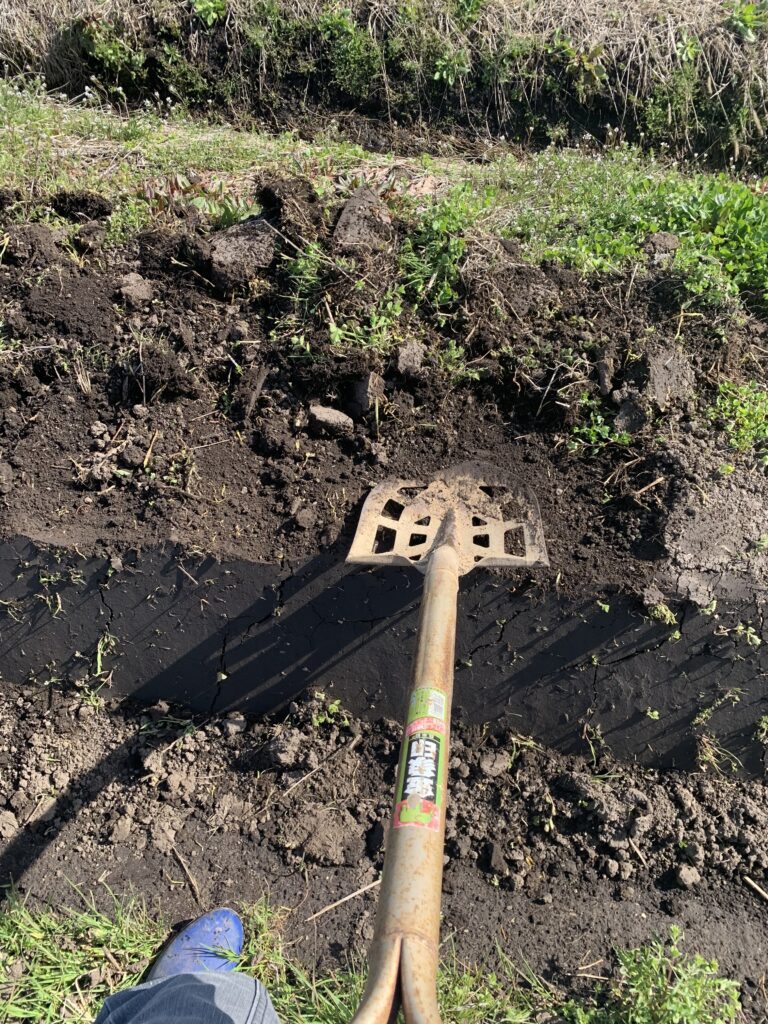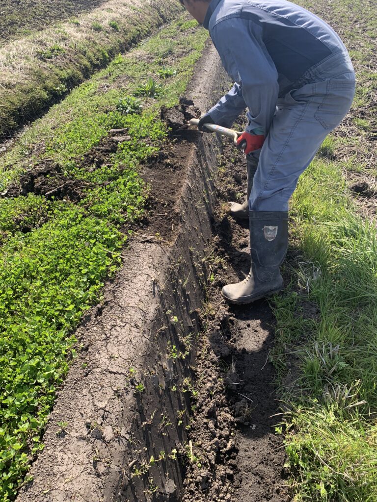 側溝掘りに加えて畦(あぜ)の補修も毎回するんですが