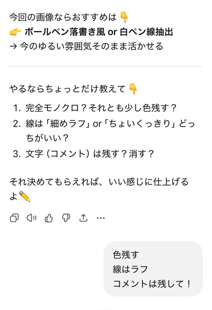 手書き風のラフスケッチ加工まで追加してみました。